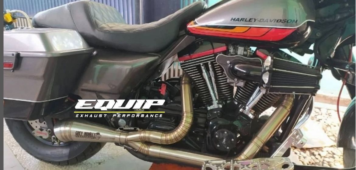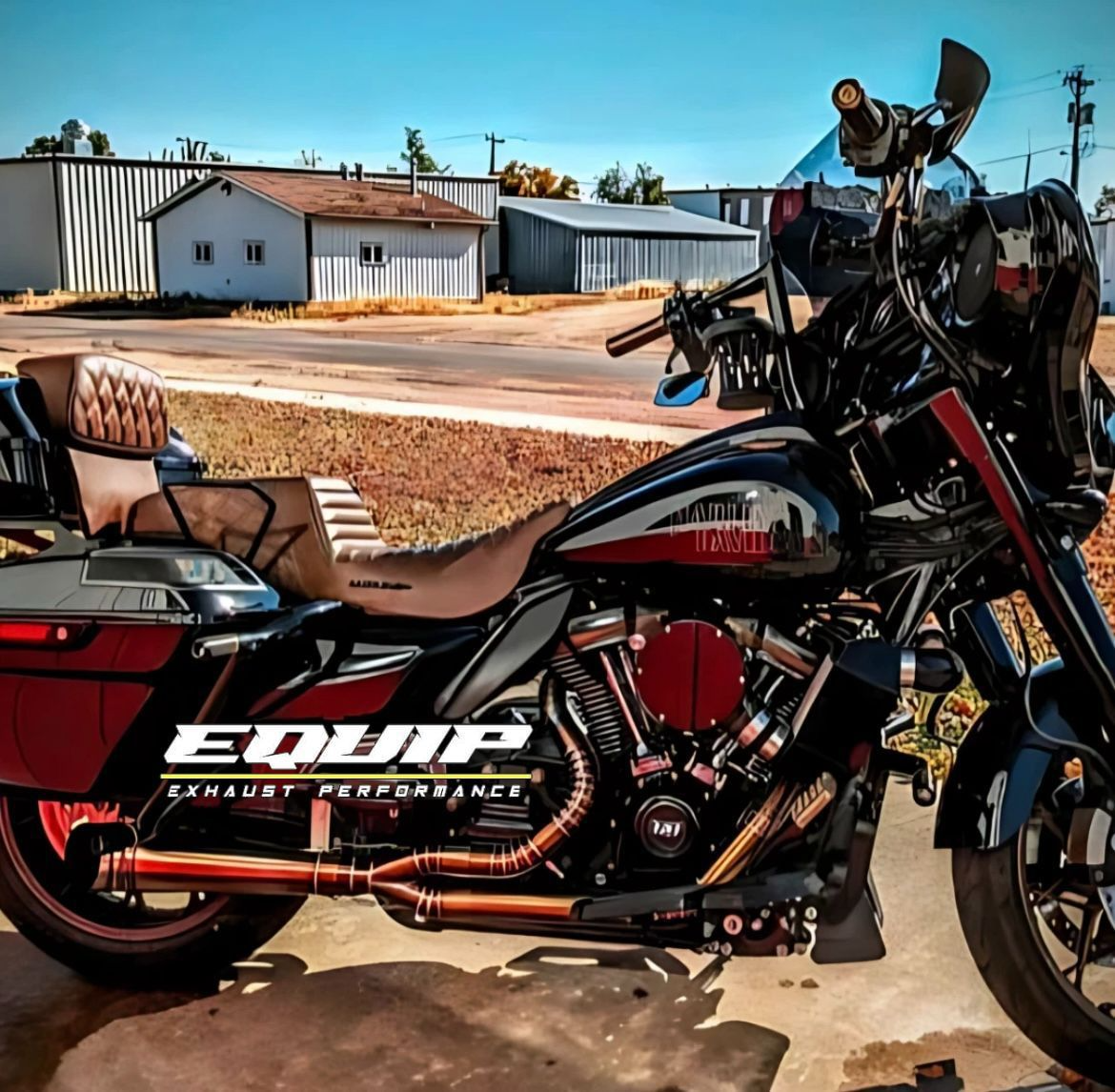 Our EQUIP EXHAUST PERFORMANCE exhausts have a great deep, throaty tone that are much louder than the stock exhaust. As far as volume goes, we rate them a 10 on a 1-10 scale as they are just slightly quieter than straight pipes. EQUIP EXHAUST PERFORMANCE exhausts are as awesome looking as they are sounding, always giving your Harley Davidson Road/Street/Electra Glide that aggressive look.EQUIP EXHAUST PERFORMANCE exhausts are designed to be easily installed by yourself and can put on and ready to go in about 30 minutes – including taking off your factory pipes using only a few simple tools. EQUIP EXHAUST PERFORMANCE exhausts require no additional hardware for installation and use your factory pipe clamps.